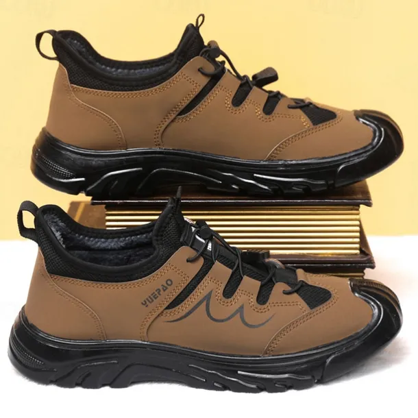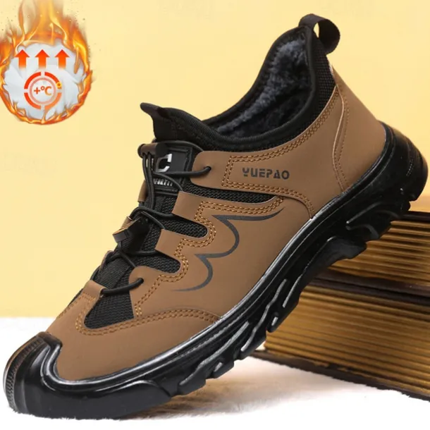 Men’s Warm Waterproof Athletic Sneakers with Faux Fur Lining, Non-Slip Sole, and Lace-Up Closure – Ideal for Winter Outdoor Activities