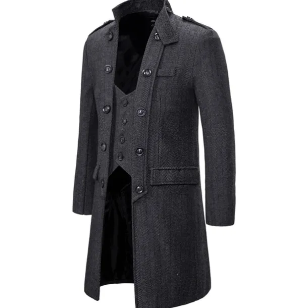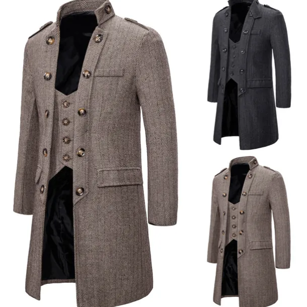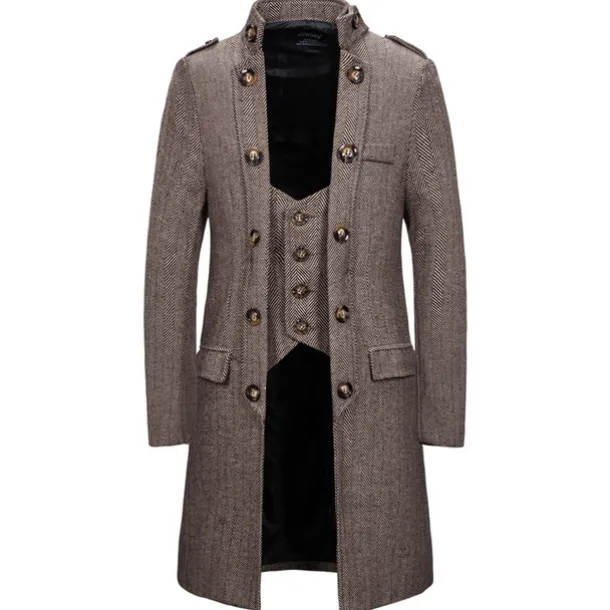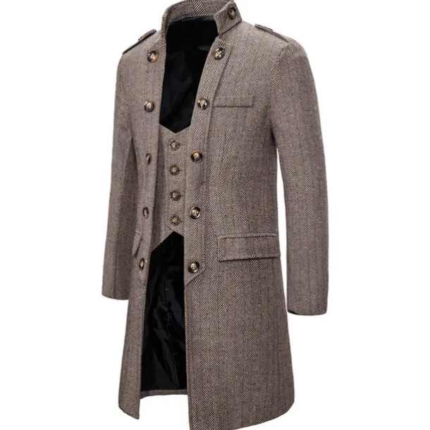 Men’s Winter Coat Peacoat Coat Business Casual Winter Cotton Blend Warm Outerwear Clothing Apparel Stylish Classic & Timeless non-printing Solid Color Pocket Stand Collar Double Breasted