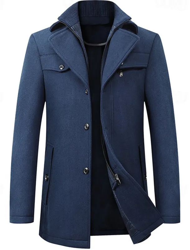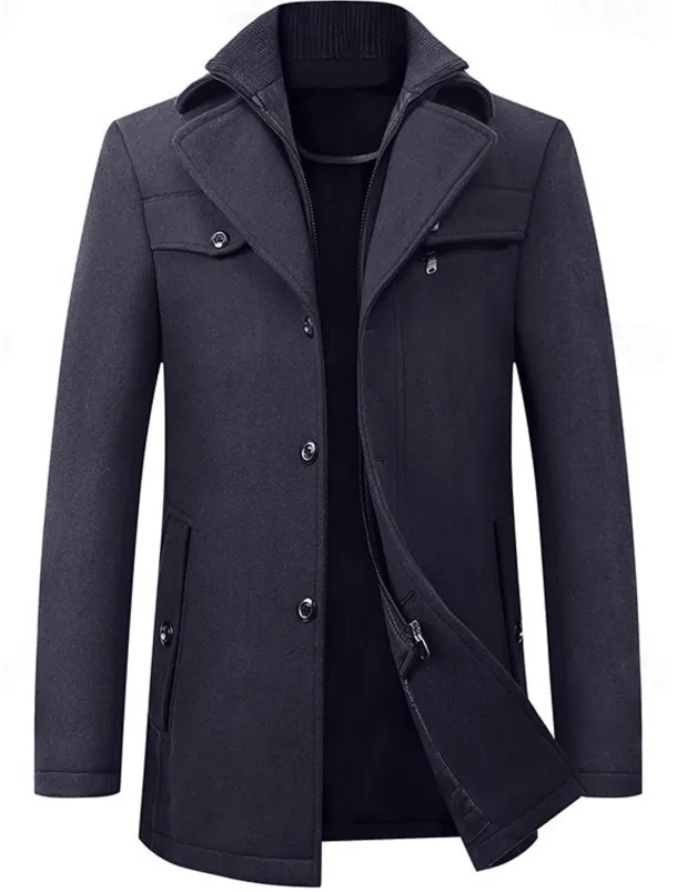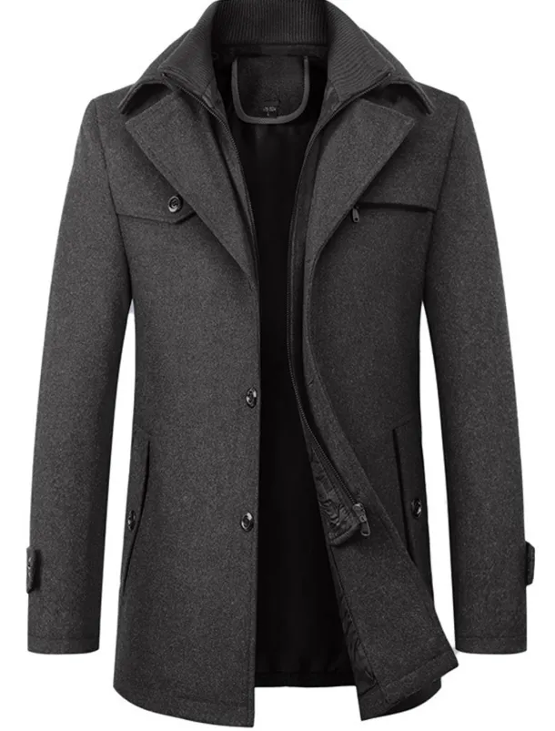 The men’s french overcoat is made of 30% wool and 70% polyester fiber fabrics, soft, smooth and breathable. No odor, not easy to pilling. Make the winter no longer cold!