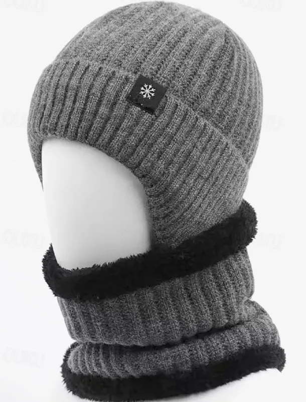 Men’s Winter Knit Beanie Hat with Scarf Set – Warm Fleece-Lined for Cold Weather Protection