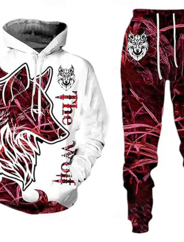 Men’s Wolf 2pcs 3D Sweatshirt Sets Tracksuit Hoodie Sweatshirt Long Sleeve Long pants Hooded Streetwear Casual Daily Athleisure 3D Print Graphic Spring Fall Winter Violet Red