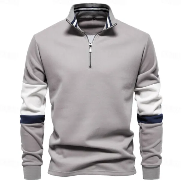 Men’s Zip Hoodie Sweatshirt Pullover Navy Blue Green Khaki Gray Standing Collar Color Block Sports & Outdoor Sports Weekend Streetwear Cool Casual Spring & Fall Clothing Apparel Hoodies Sweatshirts