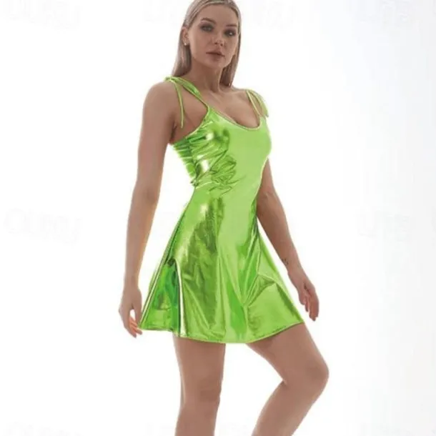 Metallic 1980s Shiny Latex Patent Mini Dress Disco Fancy Dress Women’s Carnival Costume Halloween Carnival Masquerade Party / Evening Pride Parade Pride Month Adults Dress
