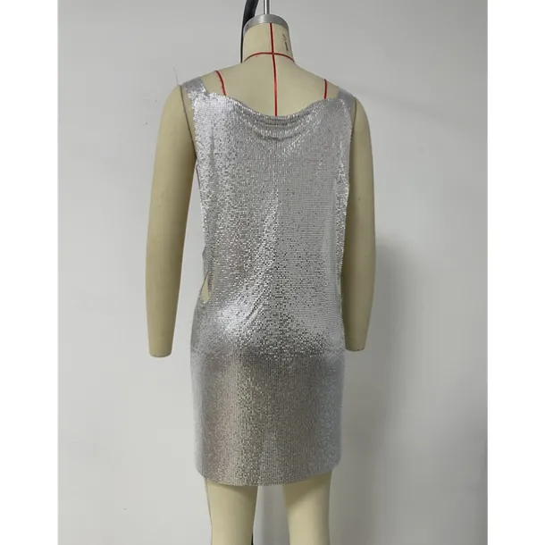 Metallic Sparkle Sexy Mini Dress Disco Sequins Solid Color Fancy Dress Women’s Party Club Adults’ Dress