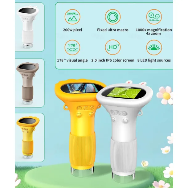 Microscope for Kids, Educational Science Kit Toys Portable Handheld Magnifying Glass, Macro Fixed Focus Digital Kid Microscopes Up to 1000x Magnification,4X Zoom, Interactive Learning