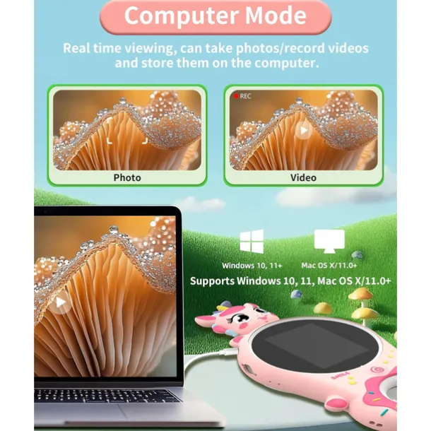 Microscope for Kids, Educational Science Kit Toys Portable Handheld Magnifying Glass, Macro Fixed Focus Digital Kid Microscopes Up to 500x Magnification,4X Zoom, Interactive Learning
