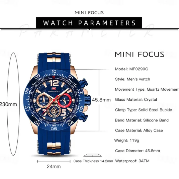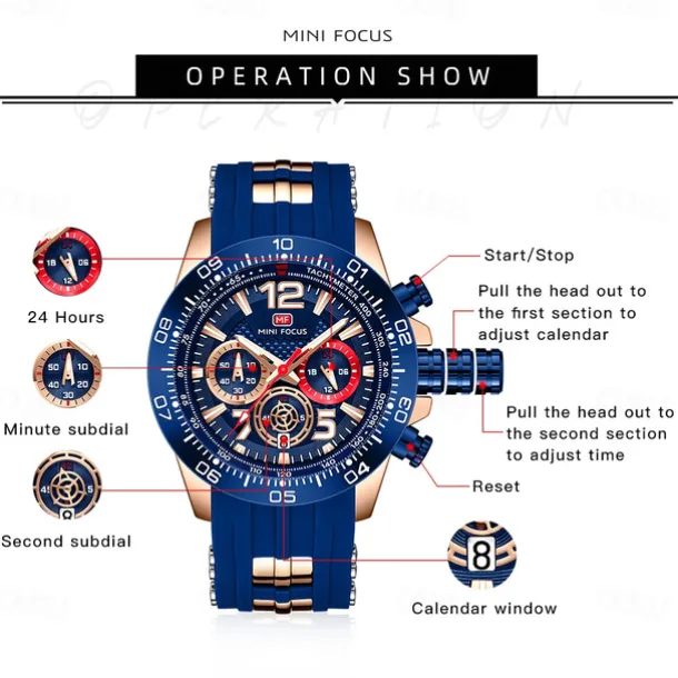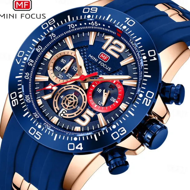 MINI FOCUS Men Quartz Watch Outdoor Sports Fashion Wristwatch Luminous Stopwatch Calendar Waterproof Silicone Gel Watch