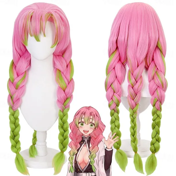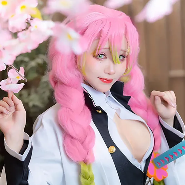 Mitsuri Kanroji Cosplay Demon Slayer Accessories Make Up Adult Kids Cosplay Wig (Kanroji Mitsuri) Yellow Halloween Wigs