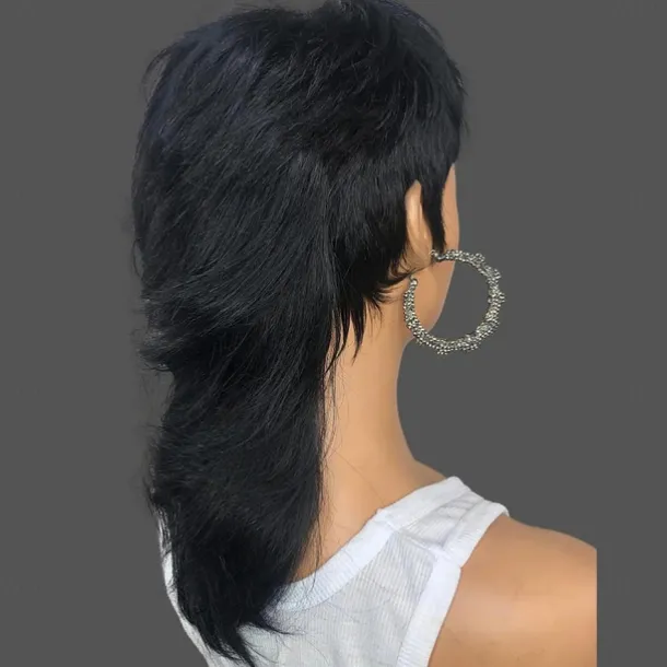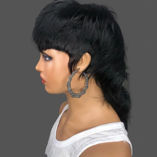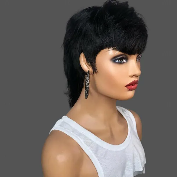 Model Length Full Machine Made Wig With Bangs Indian Virgin Human Hair Wigs For Black Women Dovetail Straight Remy