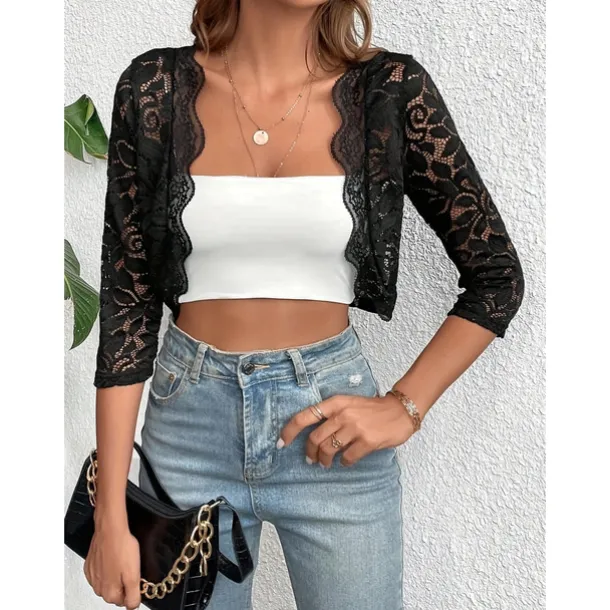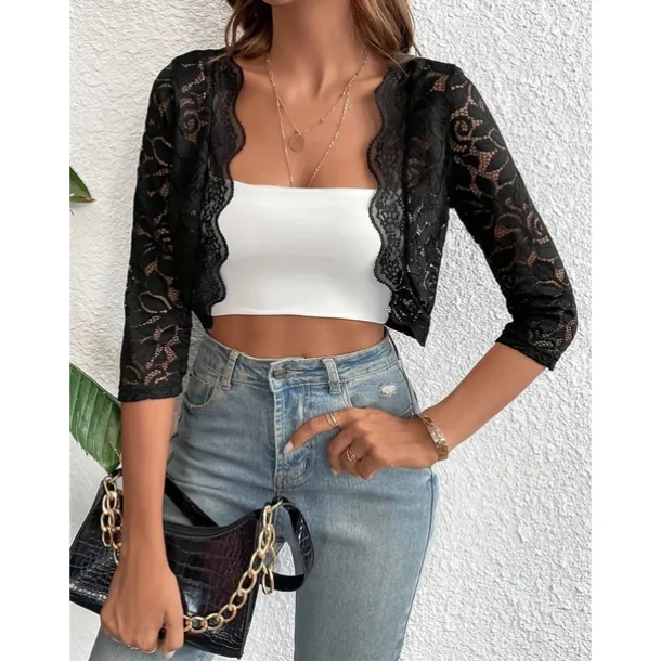 Mother’s Wraps Elegant Sun Protection Long Sleeve Lace Wedding Wraps With Pure Color For Wedding Summer