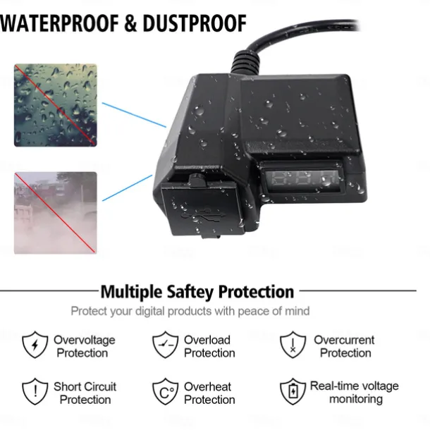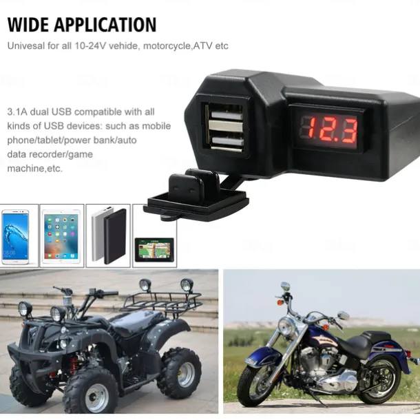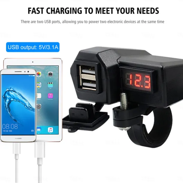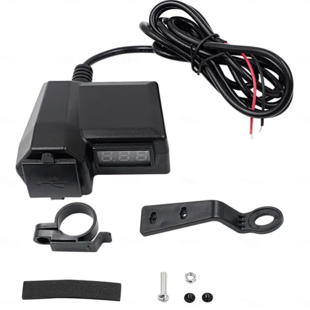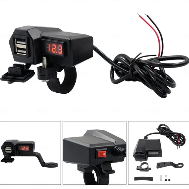 Motorcycle Mobile Phone Charger 3.4A Dual USB With Cigarette Lighter 10-24V With Voltage Display Meter Modification Accessories