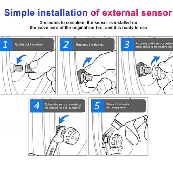 4. Abnormality Alert: If the tire pressure becomes abnormal, the M5 sensor will emit a high-volume alarm sound warning, reminding you to address the issue promptly.