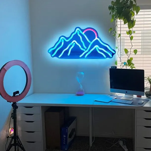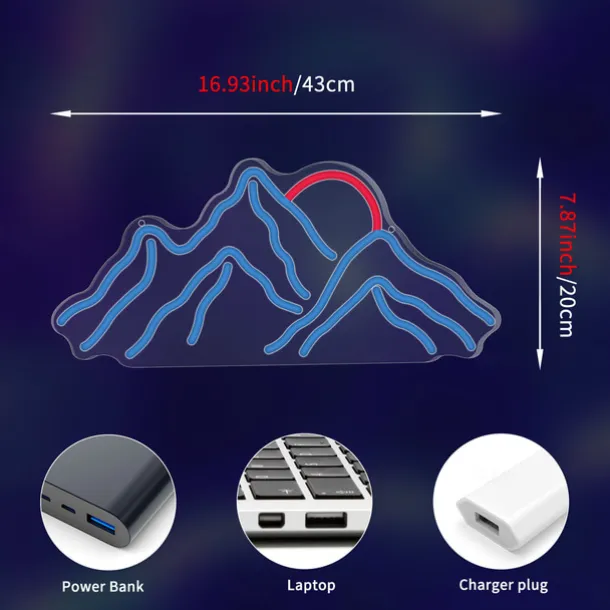 Mountain Sunset Neon Sign Light, USB Powered Dimmable LED Wall Light for Bedroom, Kids Room & Living Room Decor