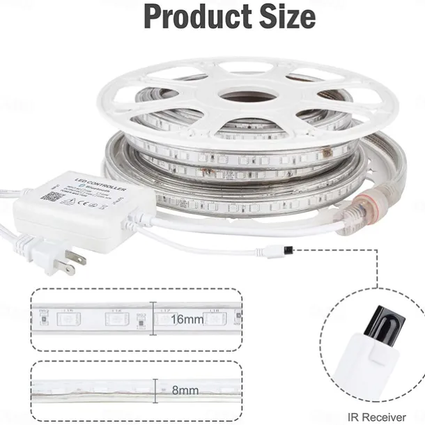 Multi Length LED RGB Strip Lights Dimmable Color Change Fairy Christmas 5050 60LED String Lights IP65 Waterproof Indoor Outdoor Rope Lights with Remote LED Strip Lighting 8x16mm AC220V