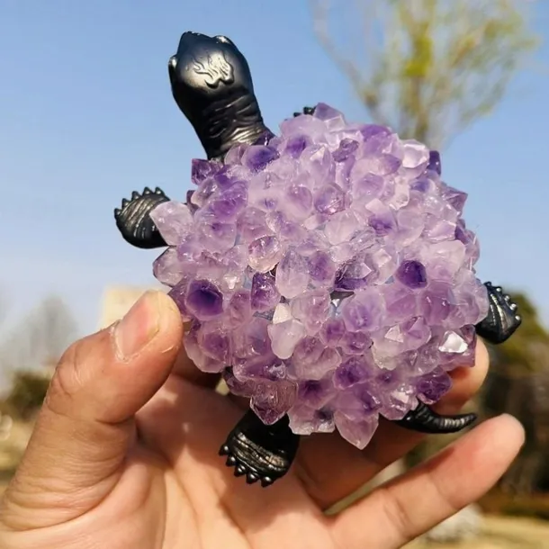 Natural Amethyst Gemstone Teeth Tortoise Statue – Unique Jewelry Accessories for Home Decoration – Handcrafted Turtle Figurine Gift for Animal Lovers