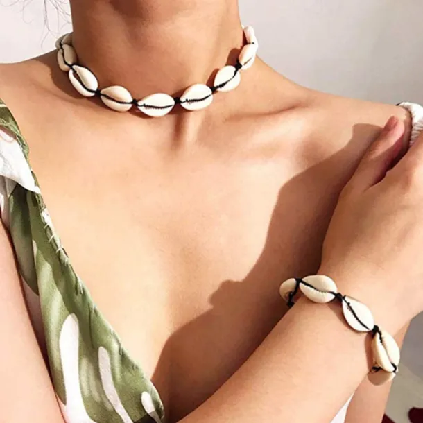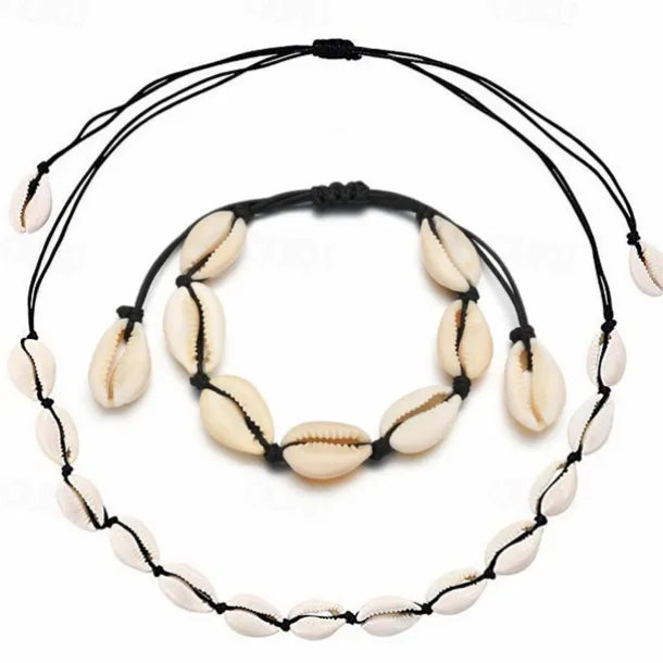 Natural Shell Necklace Bracelet Anklet Set Handmade Adjustable Summer Boho Hawaii Beach Seashell Choker Jewelry Gift for Women Girls