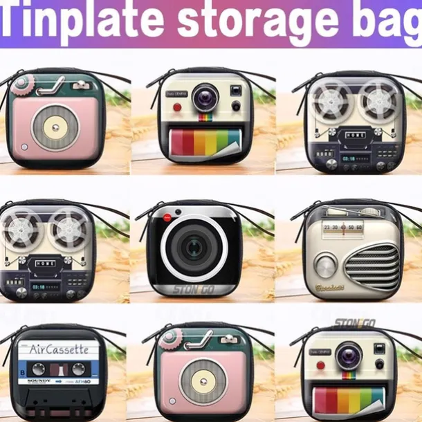 New creative tinplate coin purse retro audio cassette coin purse keychain earphone storage bag stonego bag 1PC/2Pcs (6 type optional)