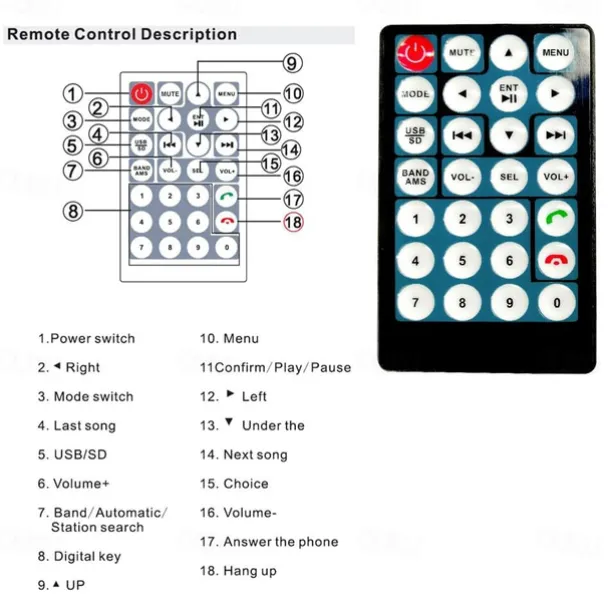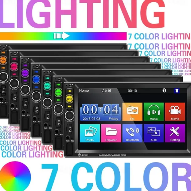 7. Fashionable design: Includes knob volume adjustment and colorful backlight settings that allow you to decorate your car with your favorite color.