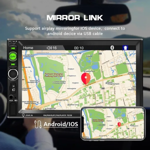 1. Supports Android/iPhone Mirror Link: Easily synchronize your phone to the on-board screen using the original USB line. Android phones allow for two-way control, while iPhones allow for one-way control.