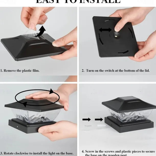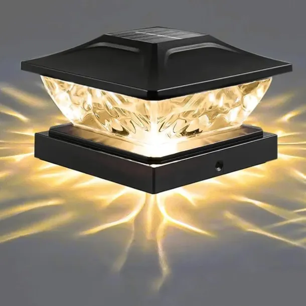 New Solar Powered LED Square Fence Light Solar Post Light White Warm Lamp Outdoor Lighting Waterproof Pillar IP65 Outdoor Solar Lamp for Garden 1PC
