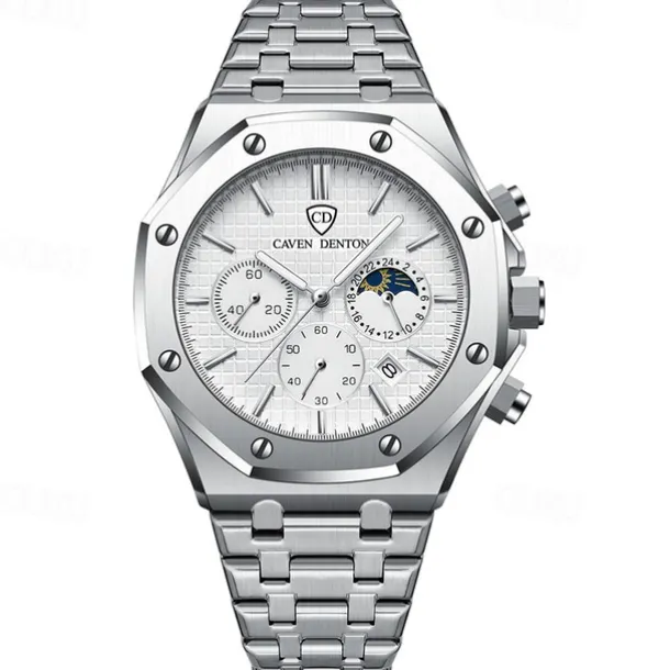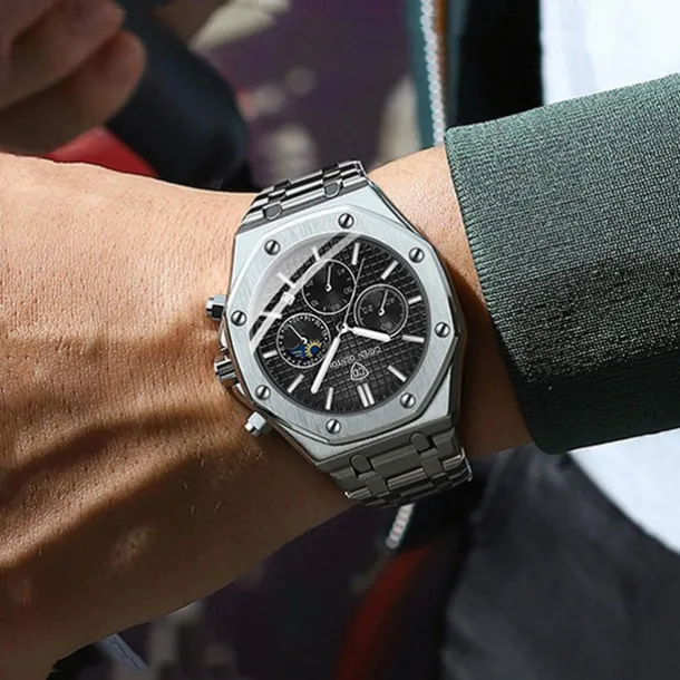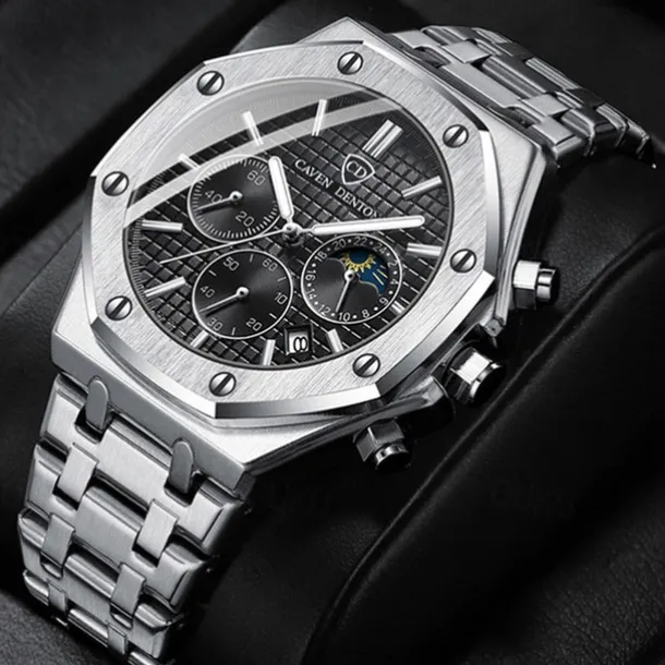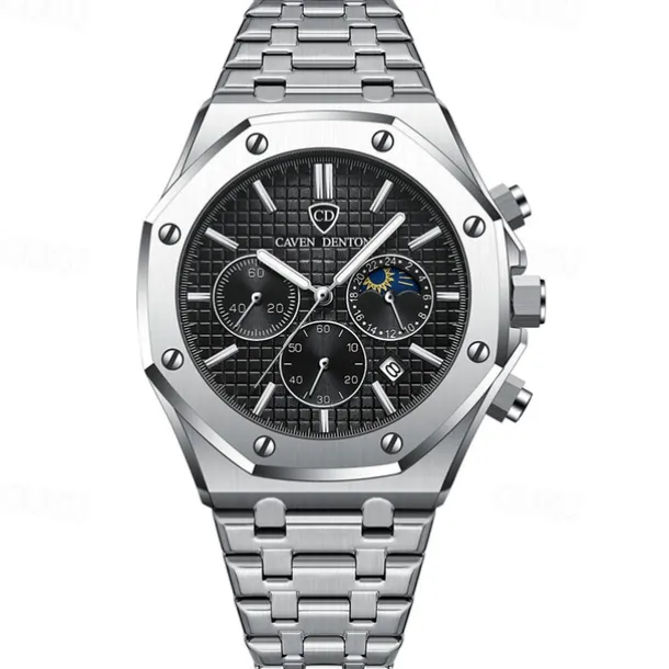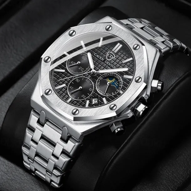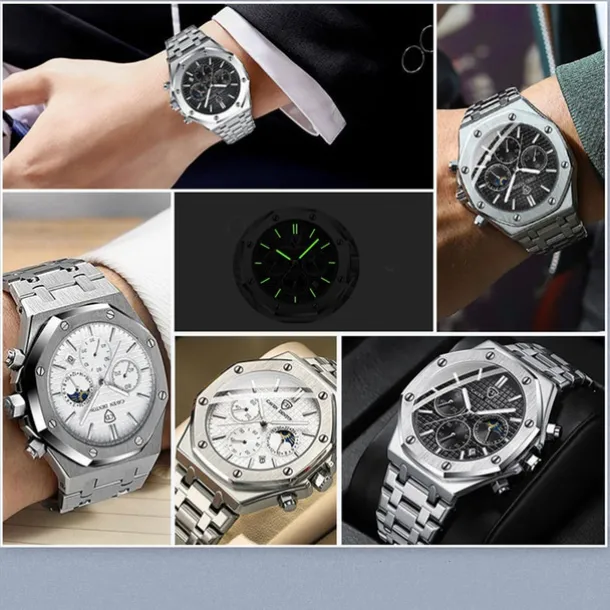 New Steel Belt Calendar Luminous Three-Eye Six-Hand Multifunction Moon Phase Multi-Function Men’S Business Watch Simple Waterproof Casual Sports Watch