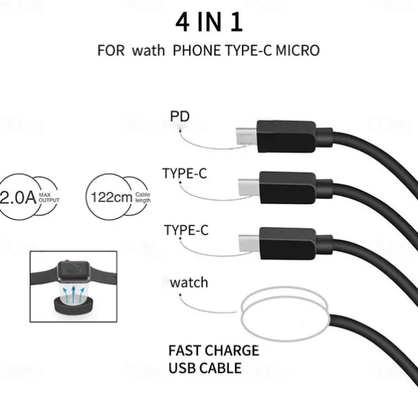 Newest 1.2m New Arrival 3 In 1 Mobile Phone Fast Charge Cable Customized Different Colors 4 in 1 watch & phone charger cable