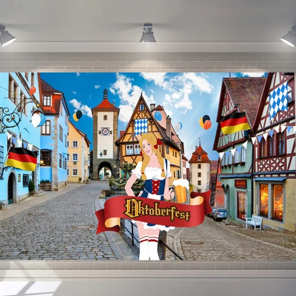 Oktoberfest Festival Decorations 5.90 x 2.95 ft Extra Large Bavarian Street Scenery Backdrop Banner Background Photo Booth with Rope Germany Beer Party Game Supplies