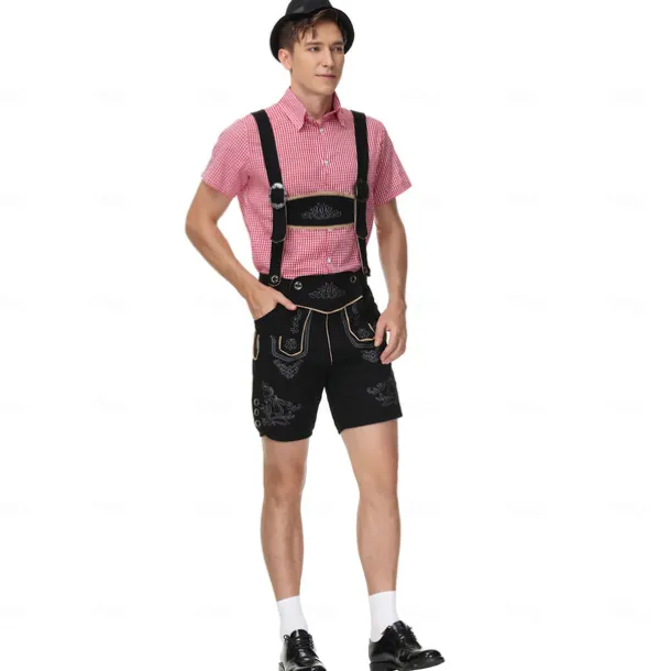 Oktoberfest Lederhosen Shirt Bavarian Bavarian German Wiesn Men’s Traditional Style Cloth Blouse Shorts