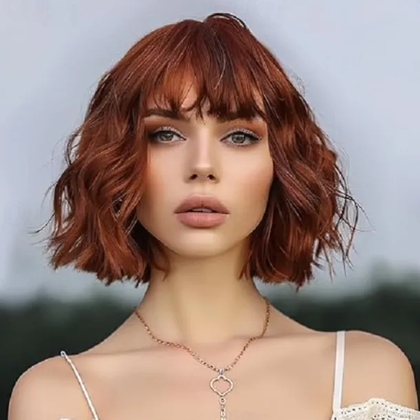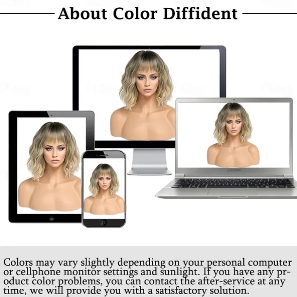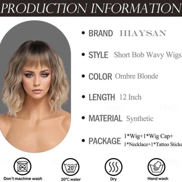 Ombre Blonde Wigs for Women Short Wavy Wig with Bangs Ash Blonde Bob Wig with Dark Roots Medium Length Natural Synthetic Hair for Daily Party&amp Cosplay Halloween Wigs