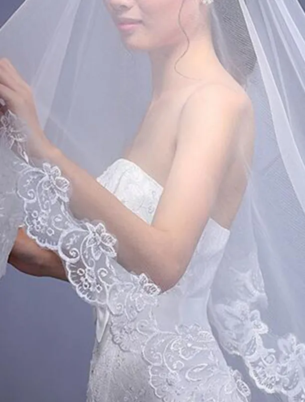 One-tier Classic Style / Lace Wedding Veil Chapel Veils with Solid / Pattern POLY / Lace