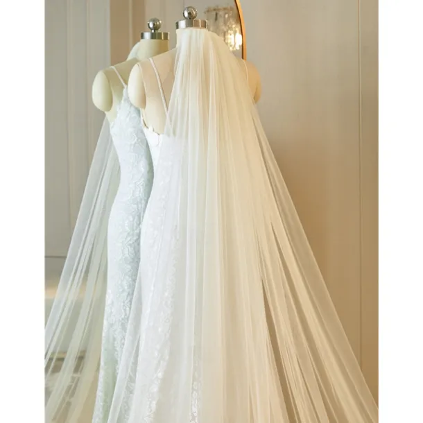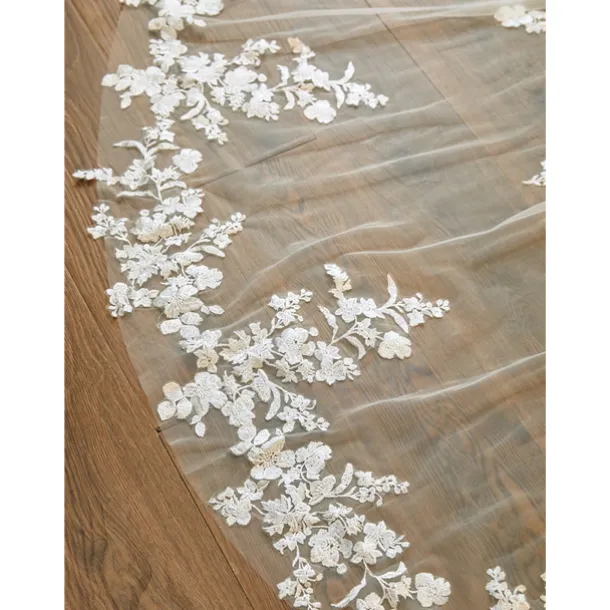 One-tier Lace Applique Edge / Lace Wedding Veil Cathedral Veils with Embroidery / Appliques / Paillette 118.11 in (300cm) Tulle