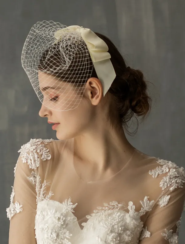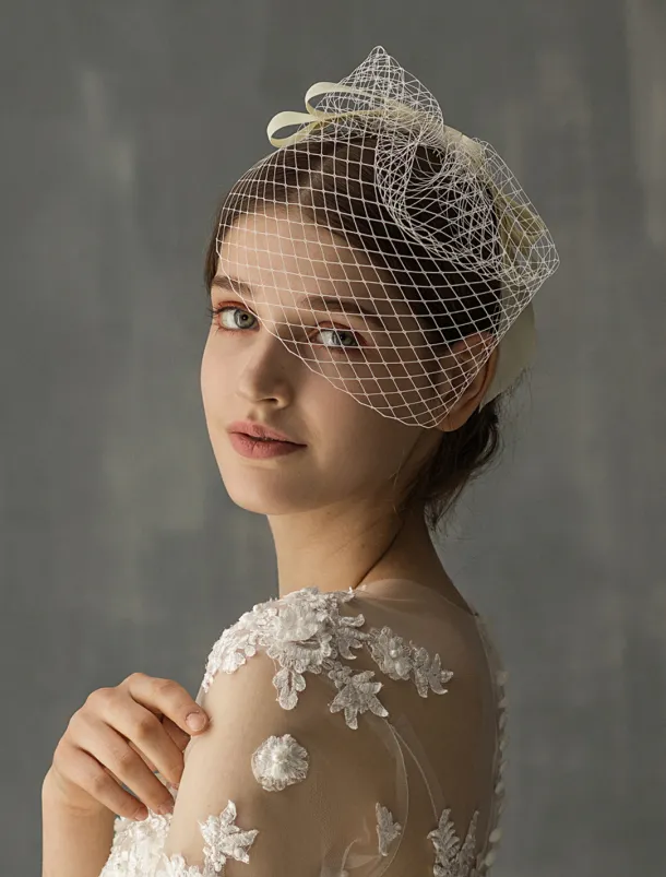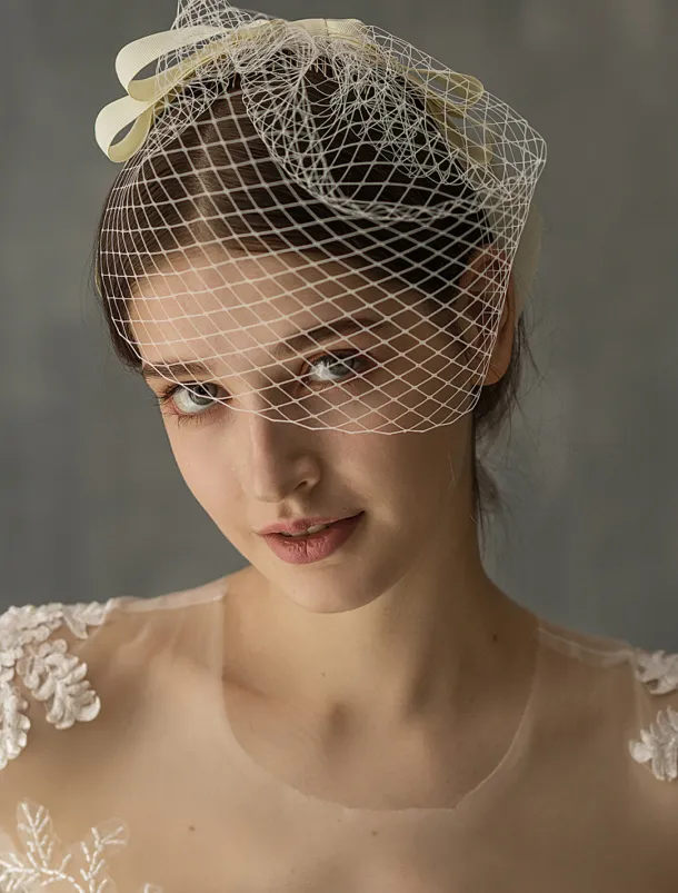 One-tier Stylish Wedding Veil Blusher Veils / Birdcage Veils with Ribbon Bow Tulle