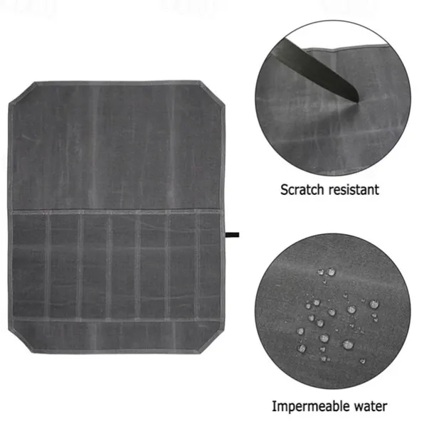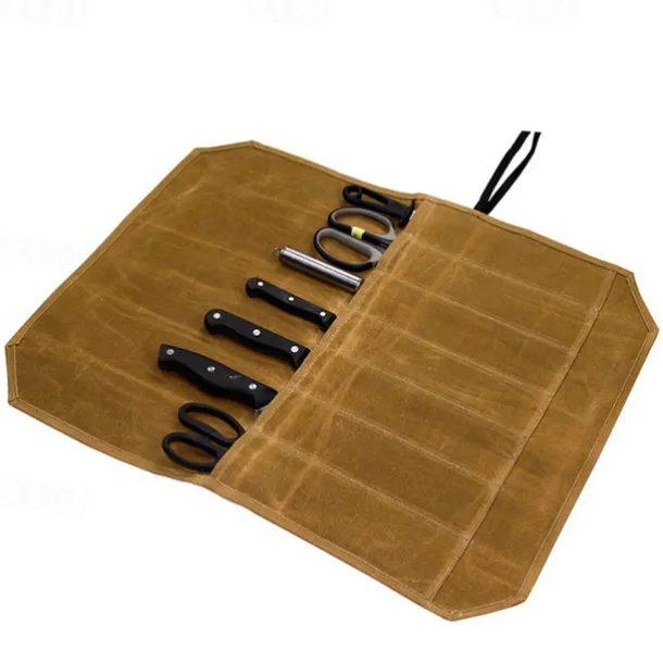 Outdoor Camping Picnic Portable Knife Bag Kitchen Knife Roll Bag Portable Wax Canvas Waterproof Cookware Kitchenware Storage Bag