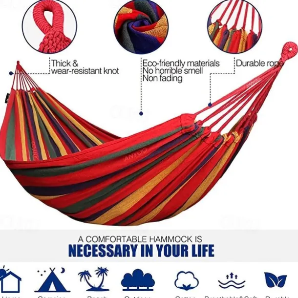 Outdoor Garden Camping Hammock With Tree Straps For Hanging, Durable Hammock Holds Up To 450lbs, Portable Hammock With Travel Bag Perfect For Outdoor/Indoor Patio Backyard Camping
