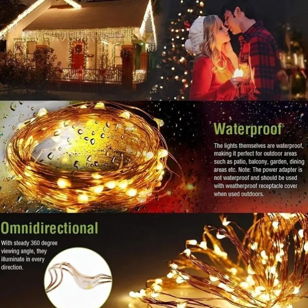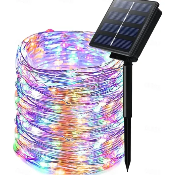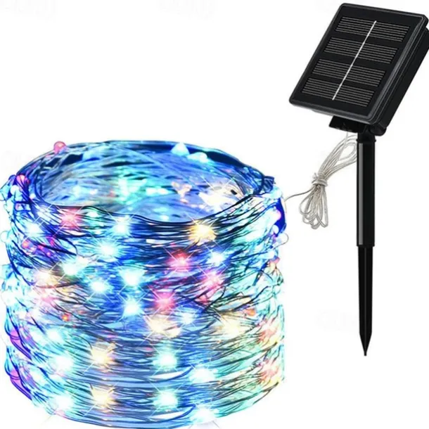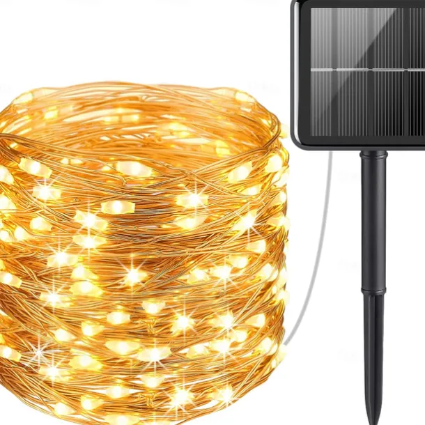 Outdoor Solar String Lights, Solar Powered Fairy Lights With 8 Modes Waterproof Decoration Copper Wire Lights For Patio Yard Trees Christmas Wedding Party