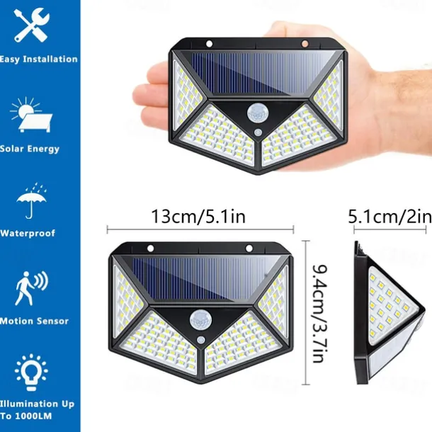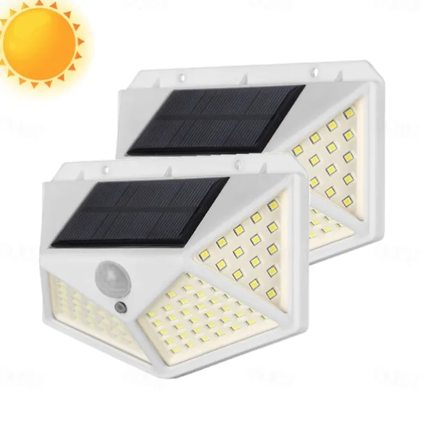 Outdoor Solar Wall Lamp with Motion Sensor, 100 LEDs, 3 Modes, 270° Lighting Angle, IP67 Waterproof for Garage, Fence, Deck & Courtyard 2/4PCS