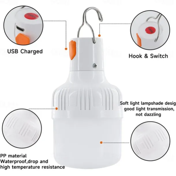 Outdoor USB Rechargeable LED Lamp Bulbs 60W Emergency Light Hook Up Camping Fishing Portable Lantern Night Lights