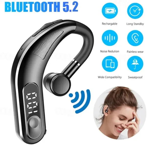Painless Wear Earhook Bluetooth Earphone Handsfree Wireless Bluetooth Headset Stereo In-Ear Headphone with Mic for Business Driver Trucker Hand-free Calling