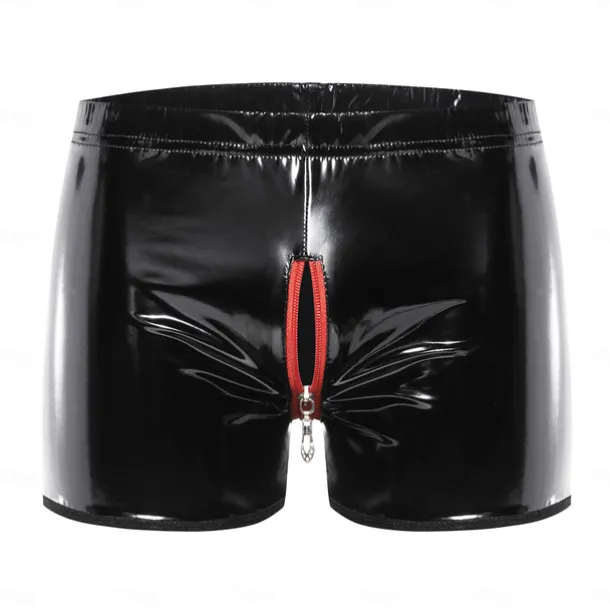 Pants Boxer Briefs Underwear Carnival Costume Men’s Zipper Front Shiny Metallic Zipper Up Spandex Costume for Performance Club Pole Dance Halloween Carnival Masquerade Adults’
