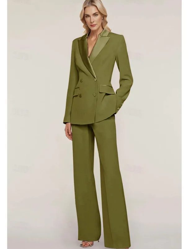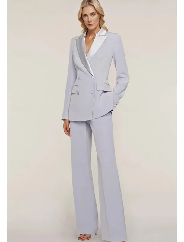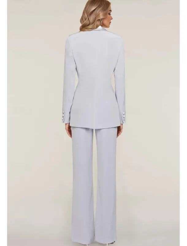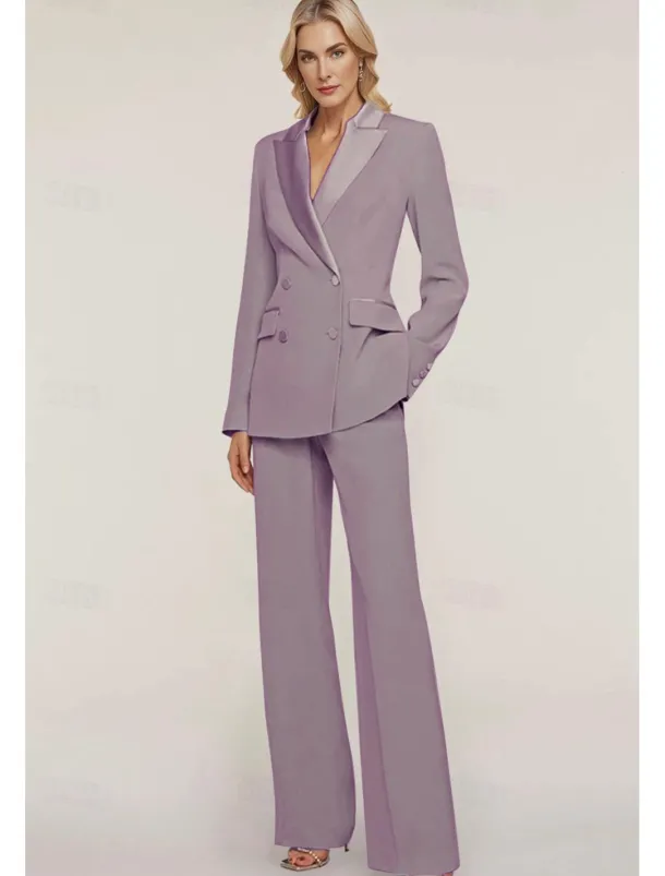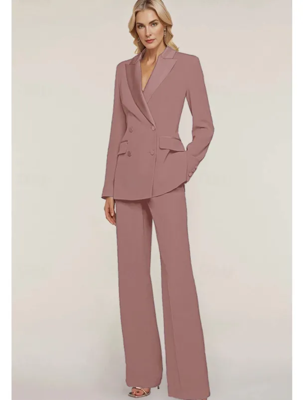 Pantsuit Mother of the Bride Tuxedo Wedding Guest Elegant Ankle Length Long Sleeve with Buttons Solid Color free custom size
