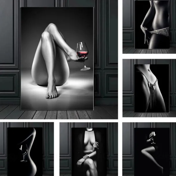 People Wall Art Canvas Sexy Nude Women Prints Painting Artwork Picture Cigarett Red Wine Figure Home Decoration Décor Rolled Canvas No Frame Unframed