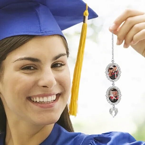 Personalized Graduation Tassel Photo Charm, Custom Memorial Best Graduation Gift,Charm with Angel Wings Unique Keepsake for Friends or Yourself, Perfect for Graduation, Birthday, Christmas