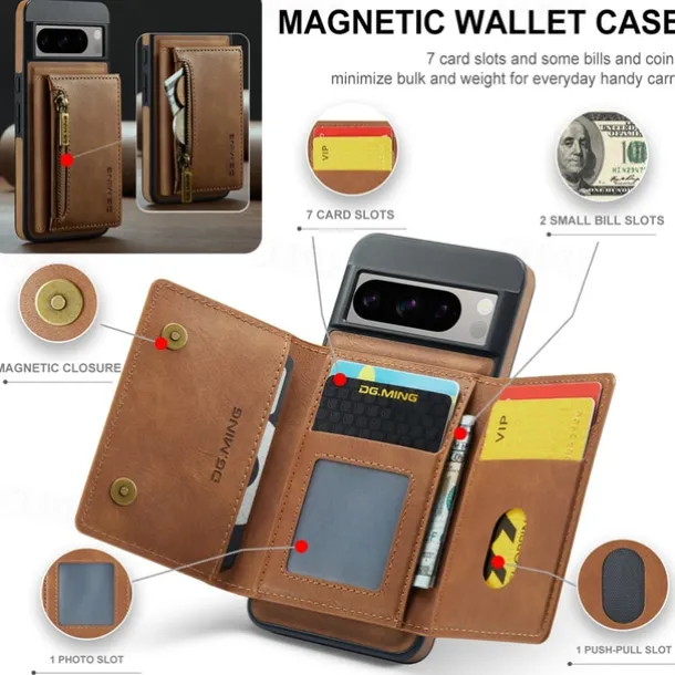 Phone Case For Google Pixel 8 Pro Back Cover Magnetic Card Slot Retro TPU PU Leather