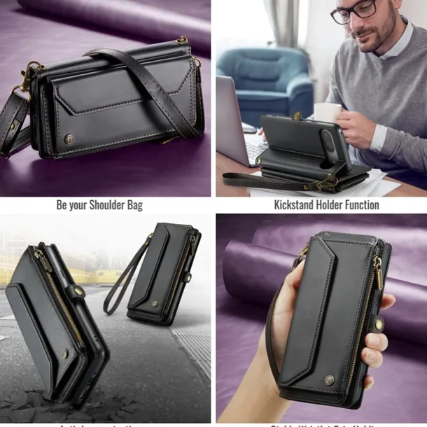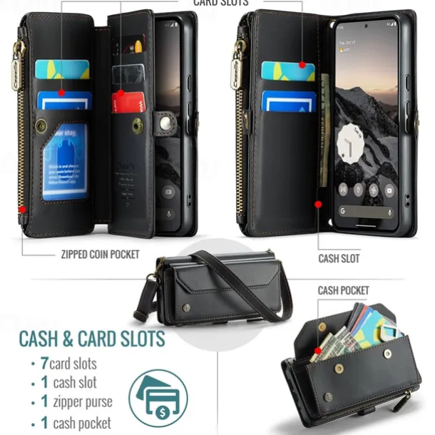 Phone Case For Google Pixel 9 Pro Pixel 9 Pro XL Pixel 8 Pro Pixel 8 Pixel 9 Wallet Case Magnetic Zipper Support Wireless Charging Retro TPU PC