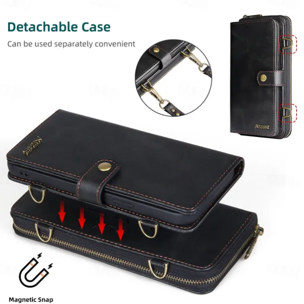 Phone Case For iPhone 15 14 Pro Max Plus 13 12 11 Pro Max Mini Wallet Case Magnetic with Lanyard Shockproof Solid Color TPU PC PU Leather