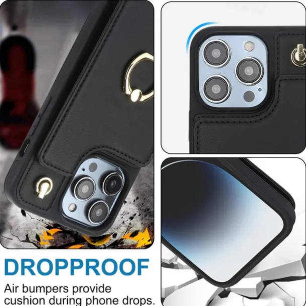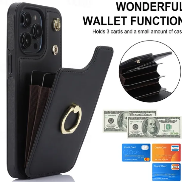 Phone Case For iPhone 16 15 14 Pro Max Plus 13 12 11 Pro Max Back Cover Ring Holder with Lanyard Card Slot Retro TPU PU Leather