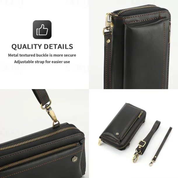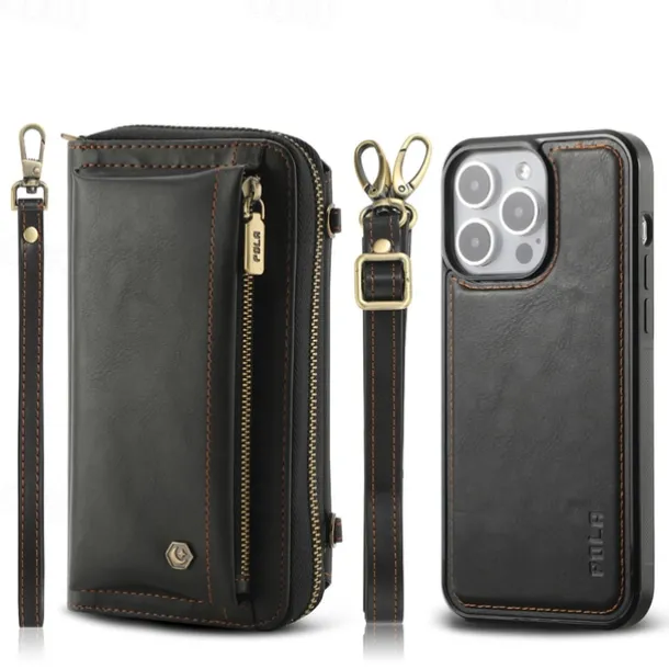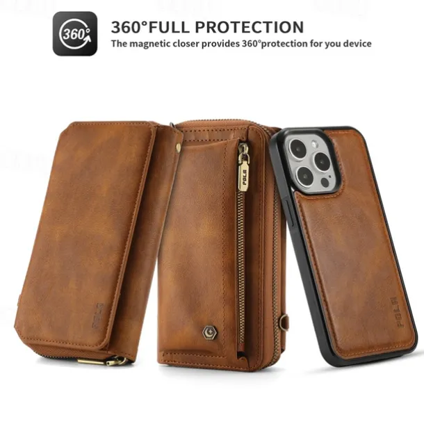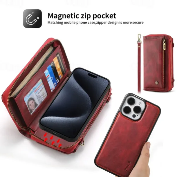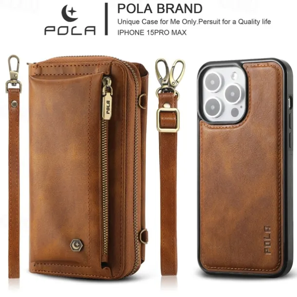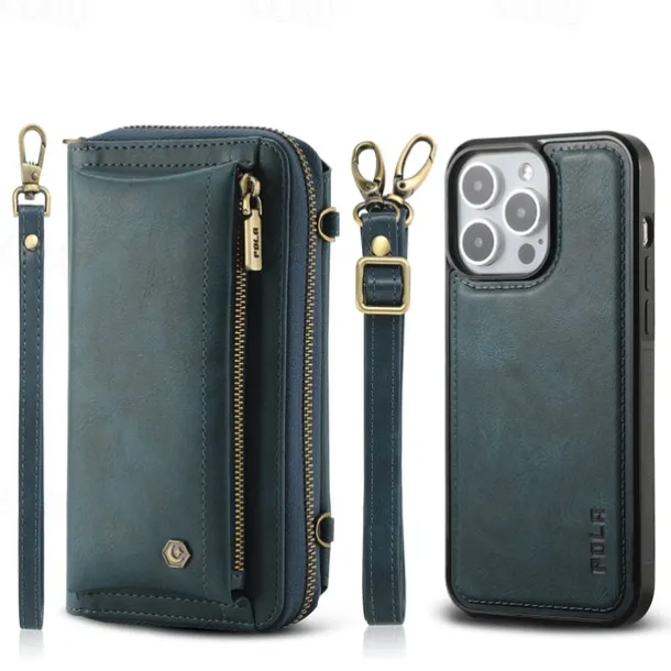 Phone Case For iPhone 16 15 14 Pro Max Plus 13 12 11 Pro Max Mini Back Cover Wallet Case with Stand Holder Zipper with Lanyard Retro TPU PU Leather