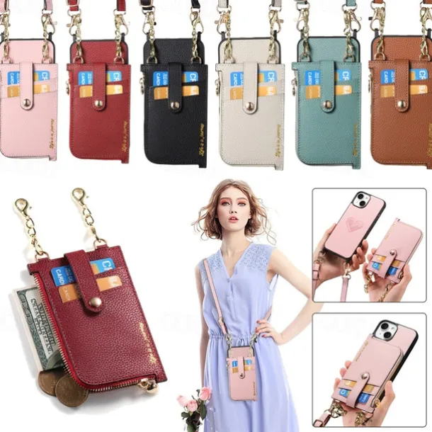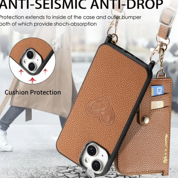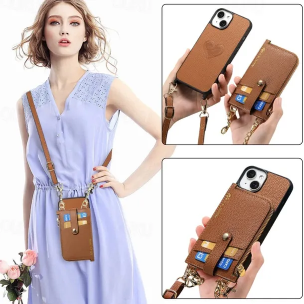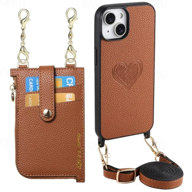 Phone Case For iPhone 16 15 14 Pro Max Plus 13 12 Pro Max Wallet Case Detachable Zipper with Lanyard Heart Retro TPU PU Leather