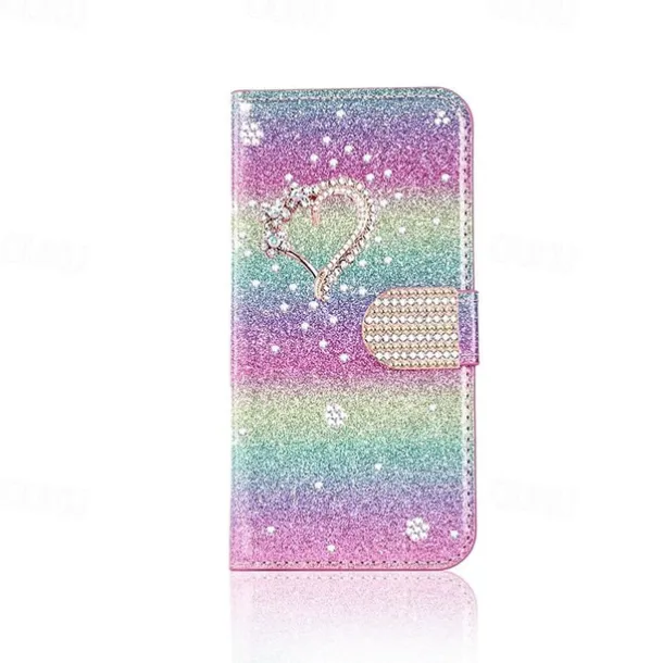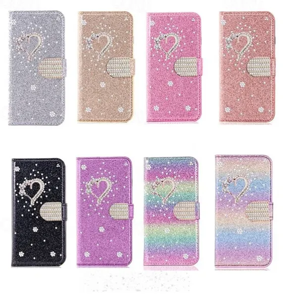 Phone Case For iPhone 17 Pro Max 17 Air 16 15 14 Pro Max Plus 16e 13 12 11 Pro Max Mini Wallet Case Flip Cover with Stand Holder Bling Glitter Shiny Rhinestone PU Leather