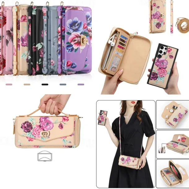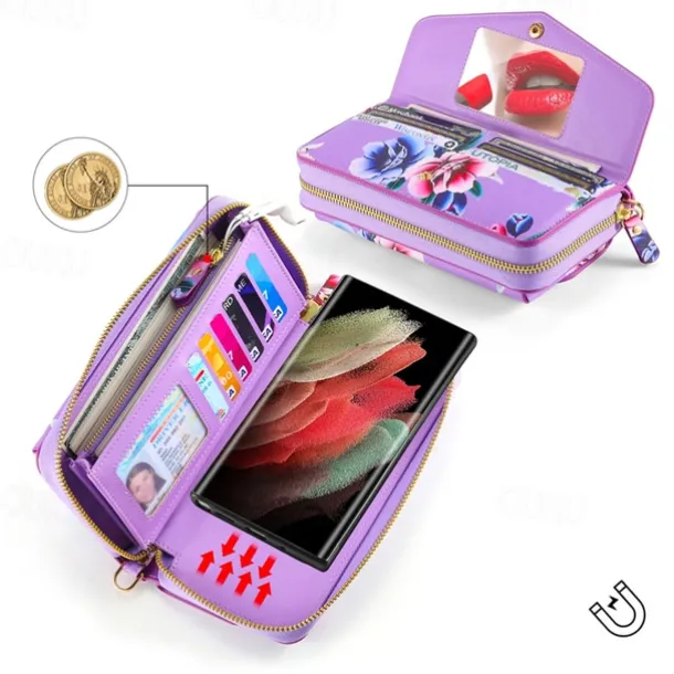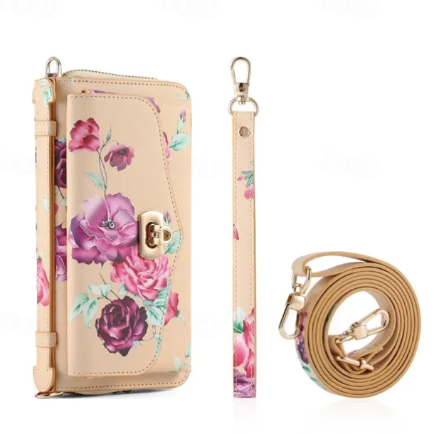 Phone Case For S24 S23 Ultra Plus S22 Back Cover Wallet Case Zipper with Lanyard with Wrist Strap Retro TPU PU Leather